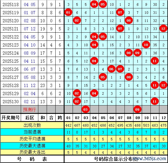 后区判断:上期后区奖号为02和11,开出热码+热码组合。最近十期后区开出11个热码、5个温码和4个冷码,本期瞻望奖号见谅冷码+温码组合,参考两码03、09。